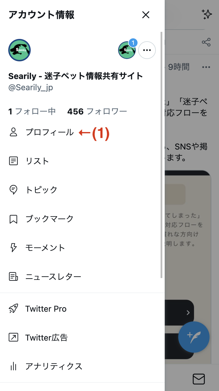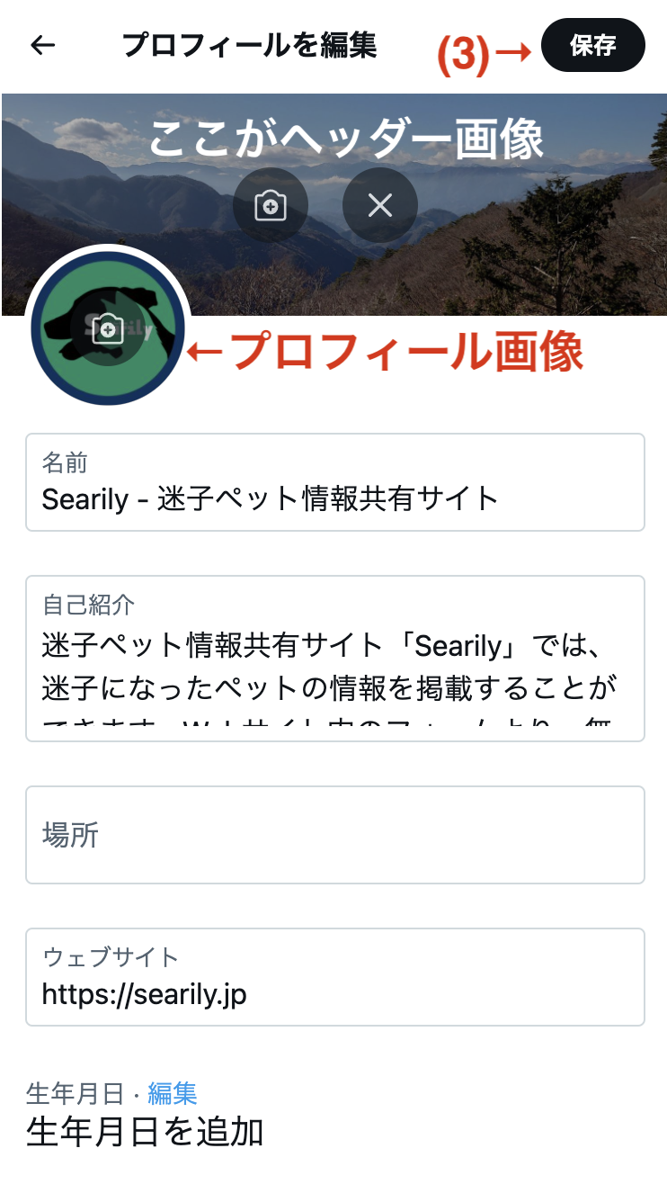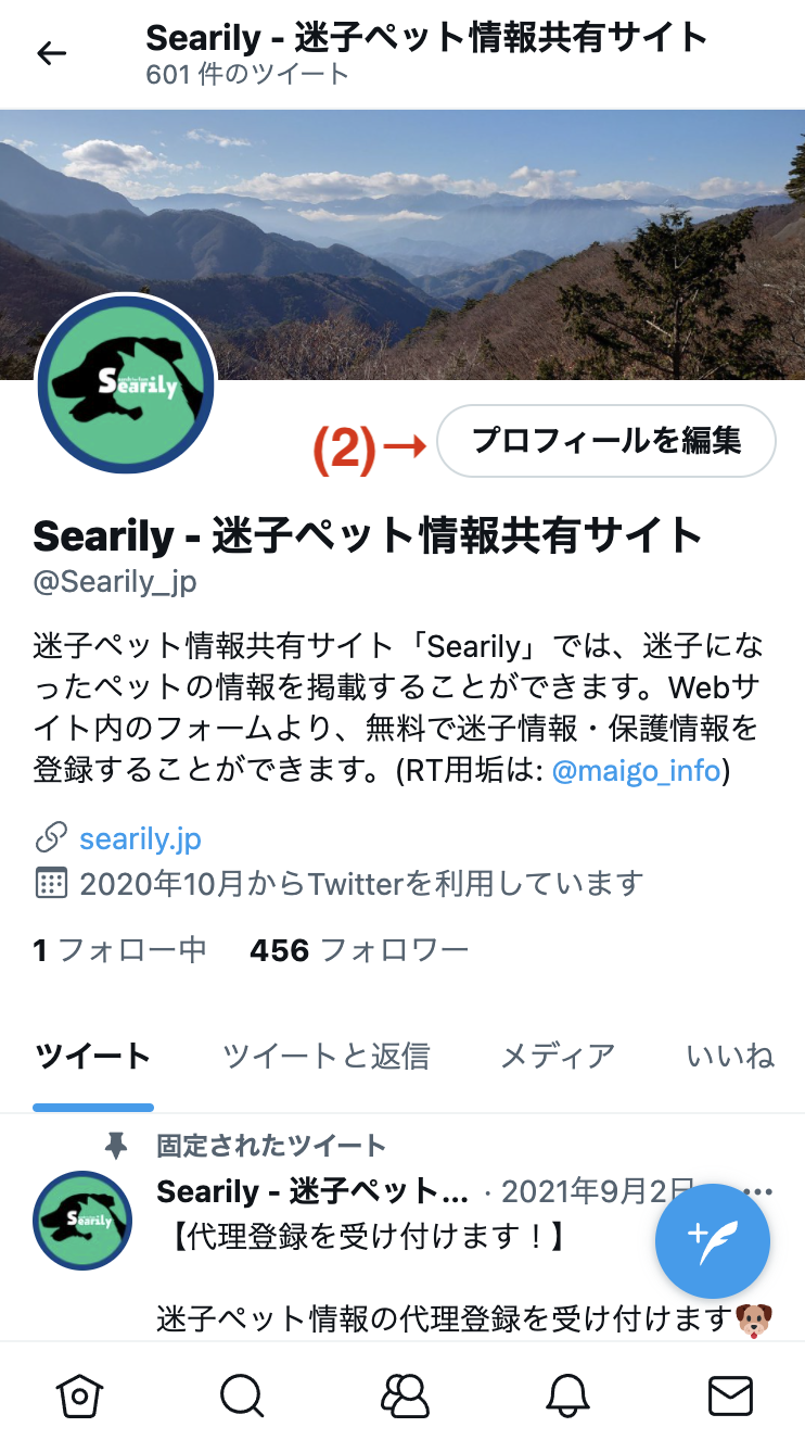 「プロフィール画像」には迷子になってしまったペットの写真を設定しましょう。